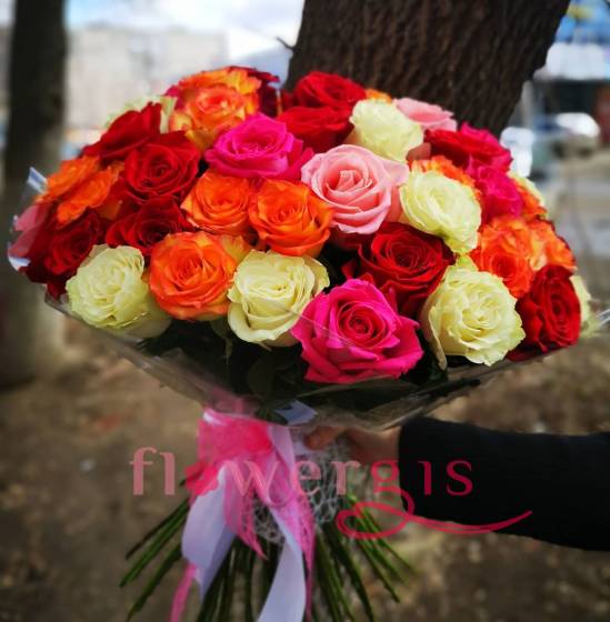 Букет из разной цветовой палитры наполнит получателя улыбкой, радостью, и настроением на весь день .